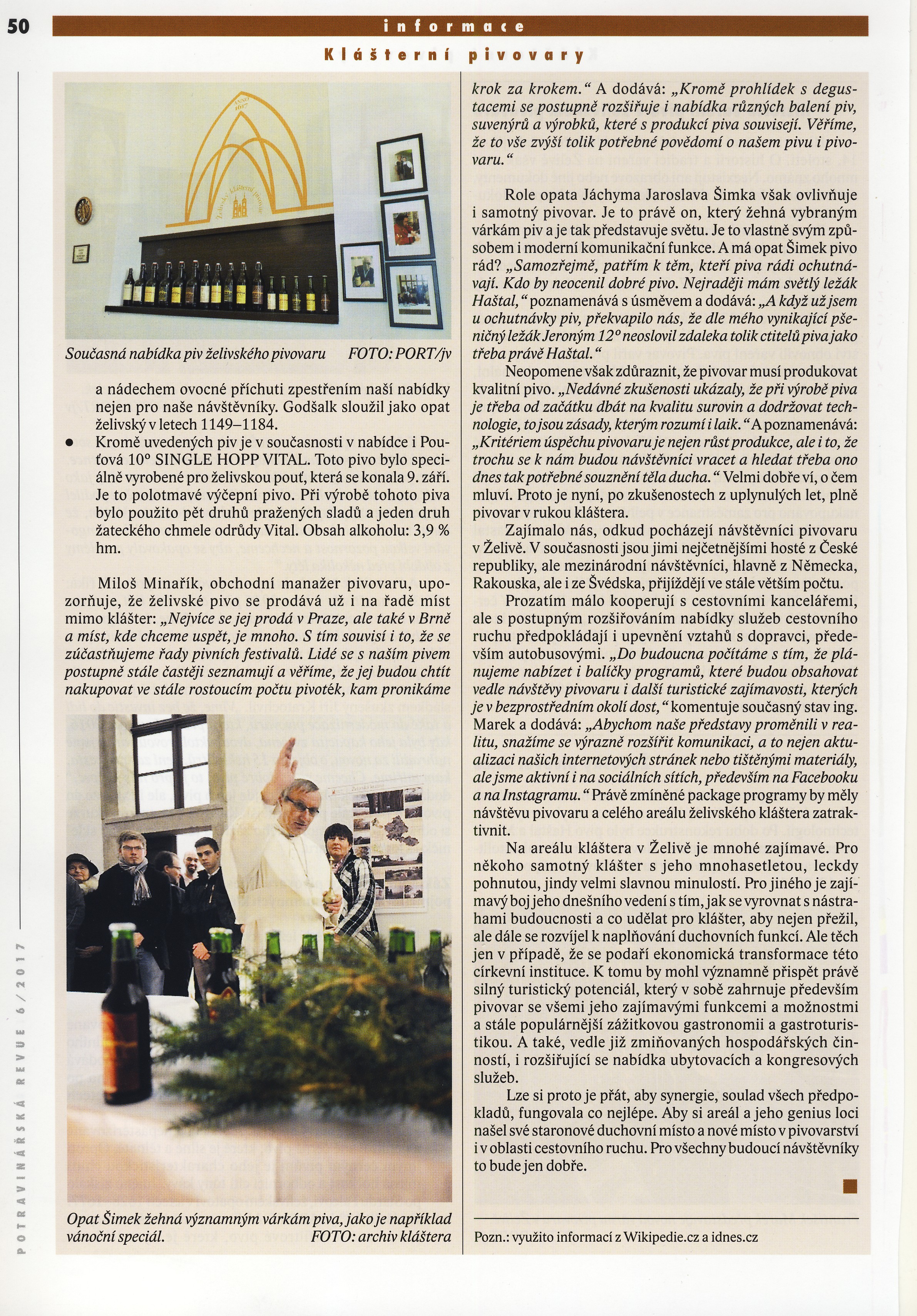 Příběh kláštera Želiv i jeho klášterní pivovar připomínají osud bájného Fénixe Potravinářská revue č. 6, 2017